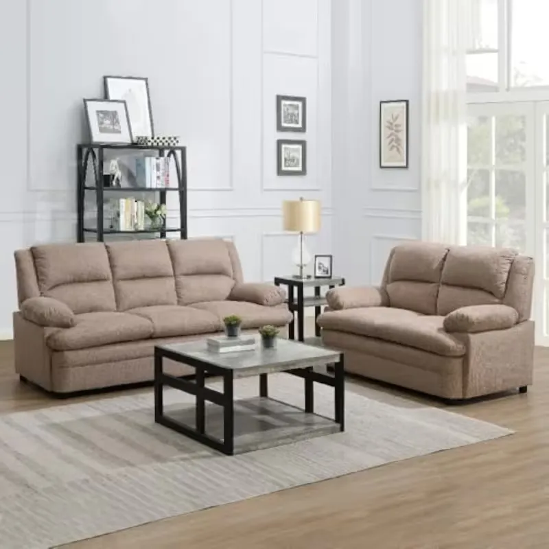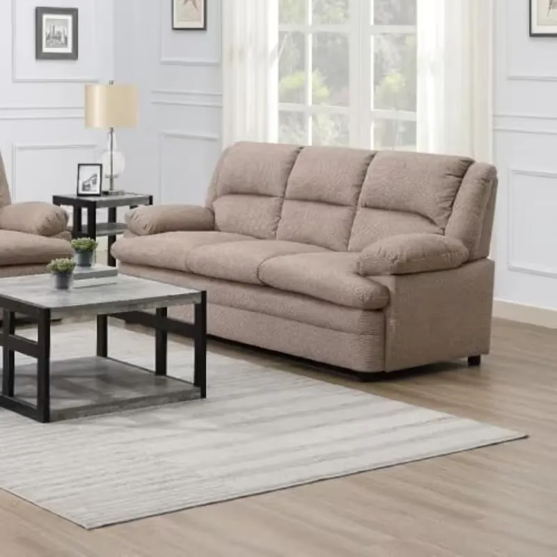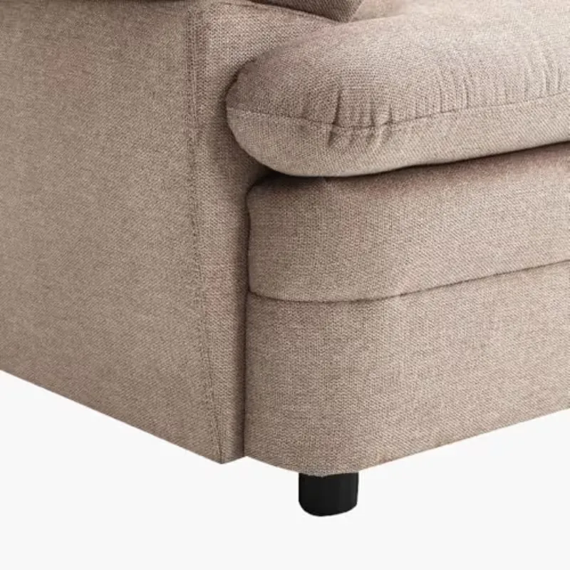 Modern 3-seater corner sofa bed in warm beige fabric, perfect for living rooms. Soft and comfortable material with vintage-inspired design. Space-saving, stylish, and versatile, ideal for home decoration or small apartment interiors.