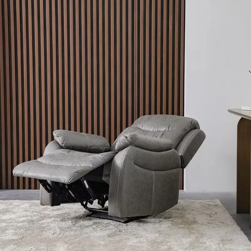 Modern corner leather sofa bed recliner in dark grey, perfect for small living rooms. Features plush cushioning, sturdy metal legs, and a manual recliner mechanism. Space-saving, durable, and easy to clean. Comfortable seating and versatile multi-functional design.