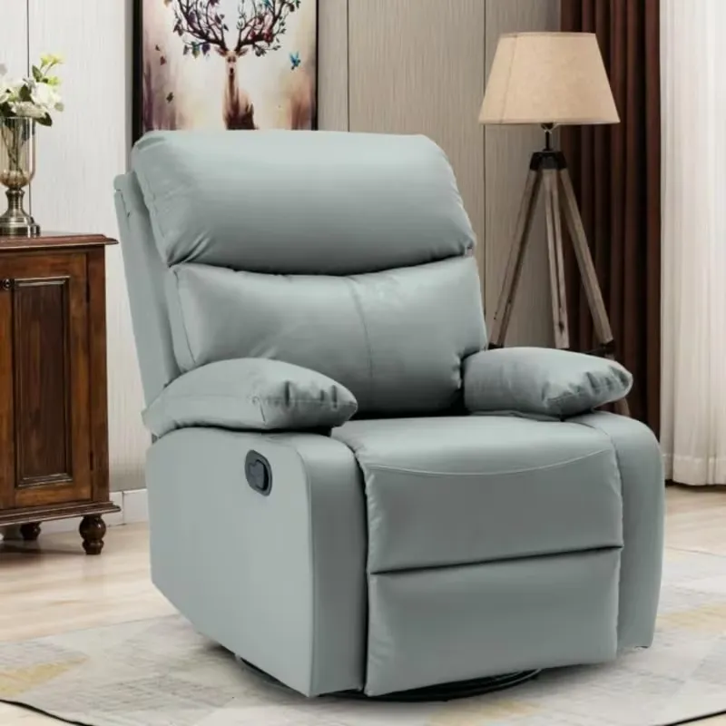 Jassper single-seater corner leather sofa bed recliner in light grey with 360° swivel and sturdy metal legs. PU leather upholstery, modern design, perfect for living rooms or small spaces. Comfortable, versatile, and easy to maintain (dry clean only).