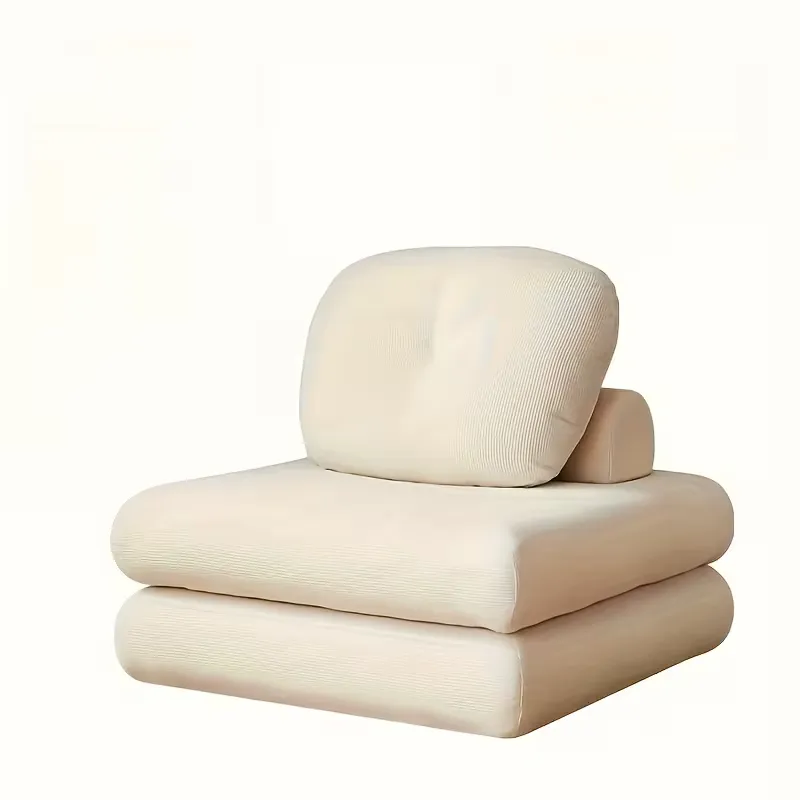 Custom made hemp fabric single sofa with minimalist tofu block design, washable upholstery, and compact comfort, ideal for bedrooms and modern small living spaces.