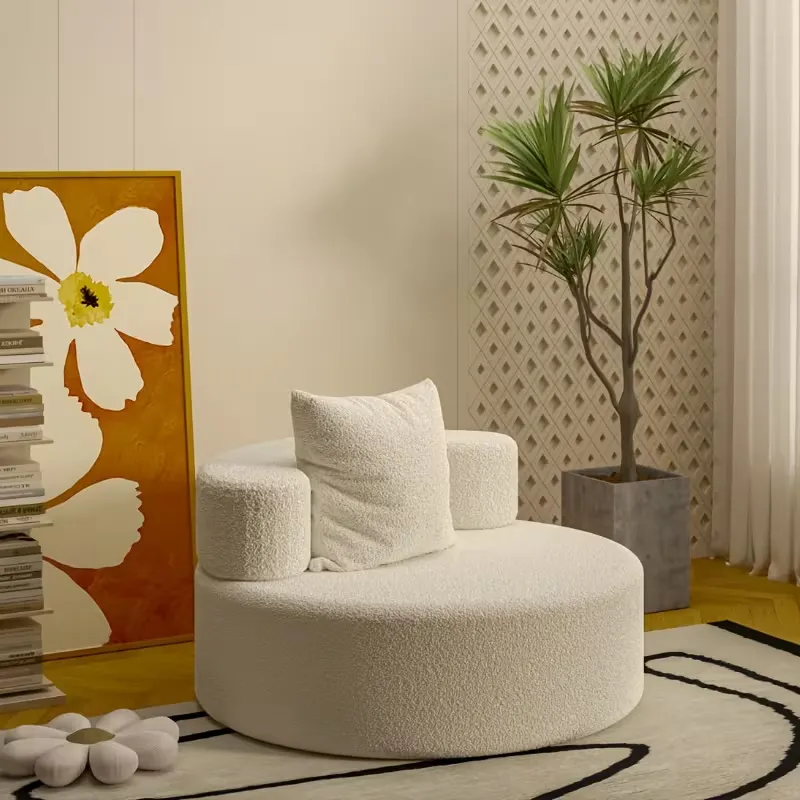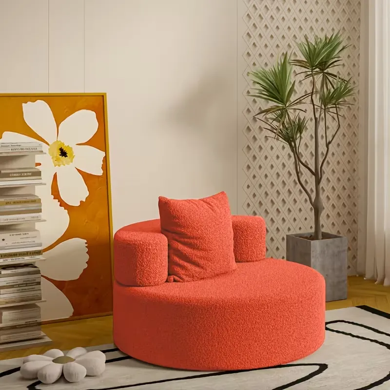 Modern single-person corner sofa bed with circular design and cushion, perfect for living rooms, balconies, offices, or apartments. Space-saving, multi-directional seating for lounging or relaxing. No assembly required. Comfortable, versatile, and ideal for small spaces.